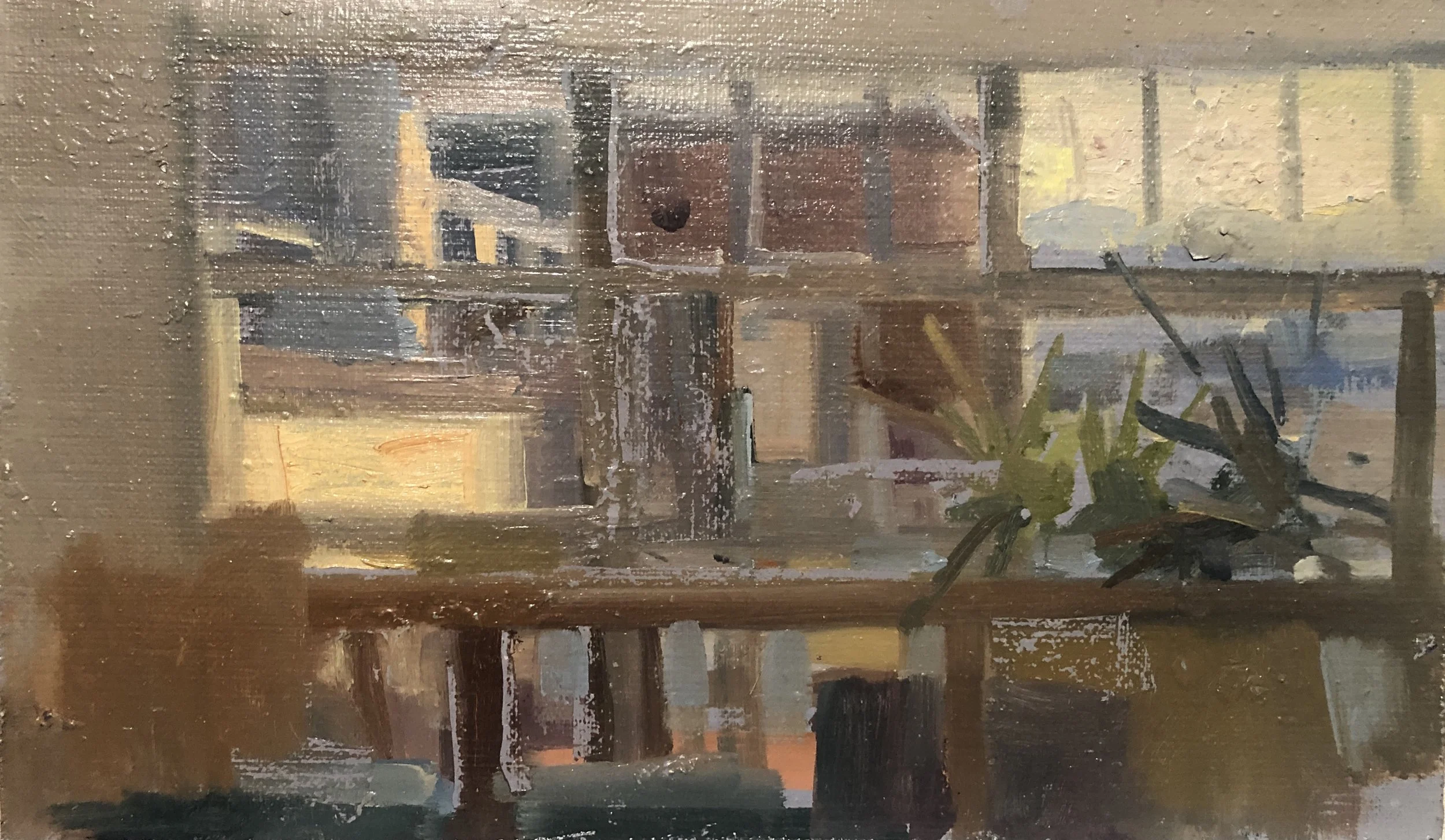 Oakland Studio 34 b, oil on linen on panel, 8x14, 2019, framed, available